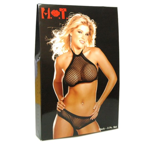 BIG HOLE STRETCH FISHNET 2 PC PJ SET With halter style front that hooks at neck and back and comes with Boy Shorts.