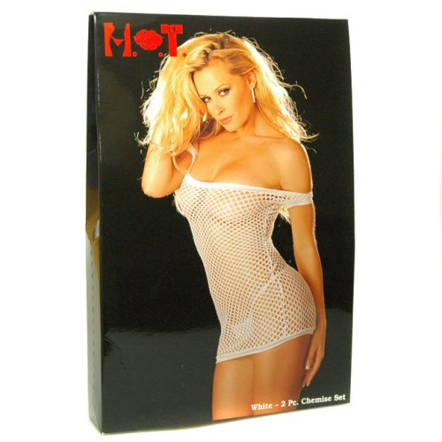 BIG HOLE STRETCH FISHNET CHEMISE PJ SET With off the shoulder styling, trimmed with Satin Spandex and comes with G-string. Colors: Black, Red, White. One Size. (Each color comes in its own box.) Also available in Queen Size.